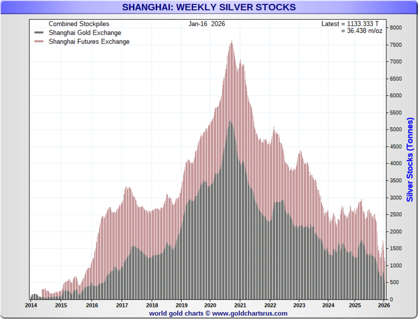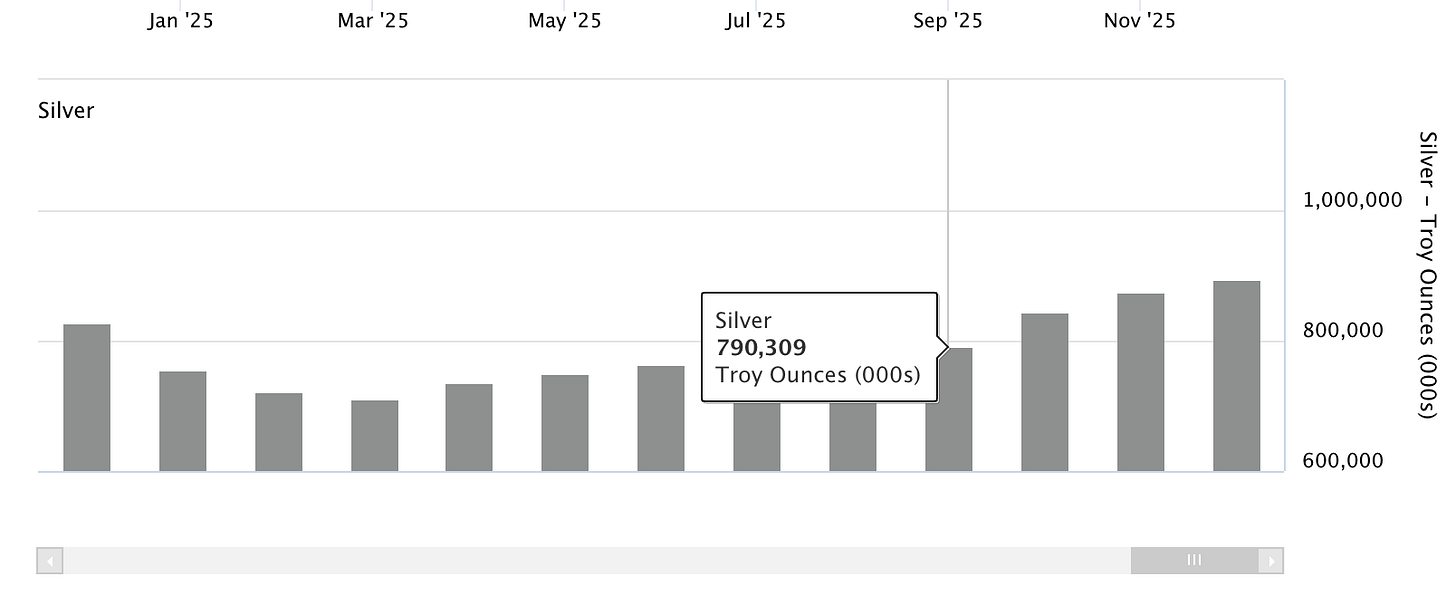 The LBMA has added 104 million ounces since the end of September, and that explains why you’ve seen the lease rates in London come back in. Although with the market continuing to run a deficit, and retail buying picking up significantly over the past month, we also just saw the fourth-largest single-day ETF addition in history, when 23.5 million ounces were added to the Indian silver ETFs on January 11.