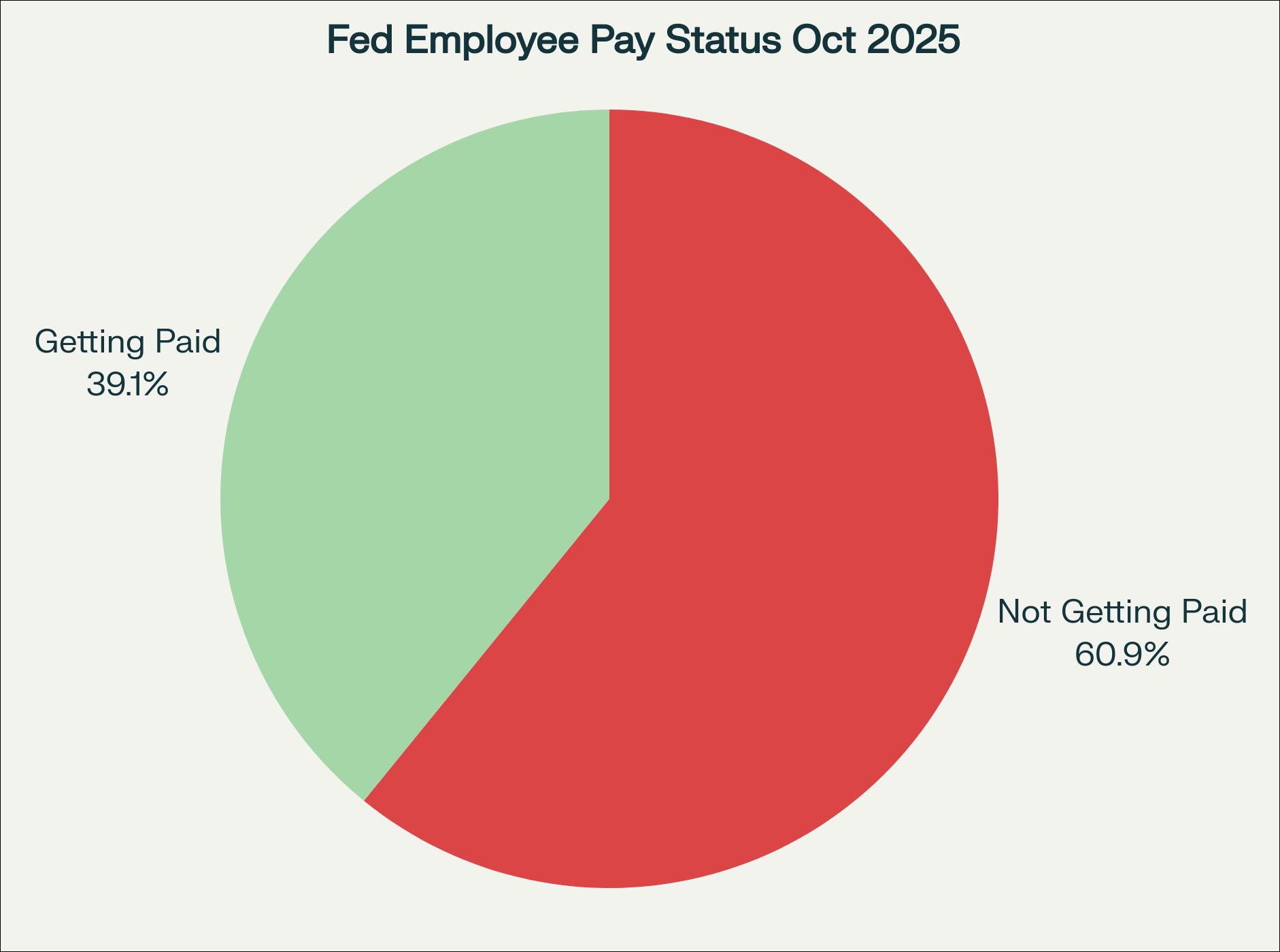 Approximately 60% of government employees are not receiving their pay as a result of the shutdown.