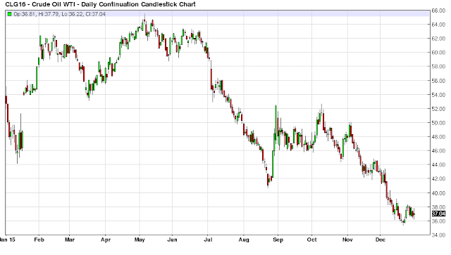Therefore, what do the charts tell us about the market for 2016? Where are the key technical levels in the commodity? And what represents a trading opportunity in the space? On a very short term basis we have been stuck between $36 and $38 for the bulk of the trading the last two weeks of the year with nobody wanting to initiate substantial new positions into year-end.