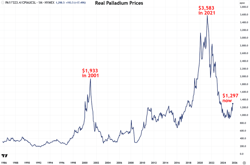 While gold and silver have rightfully been in the spotlight lately, I want to briefly shift gears and highlight the opportunity in another underappreciated precious metal: palladium.
