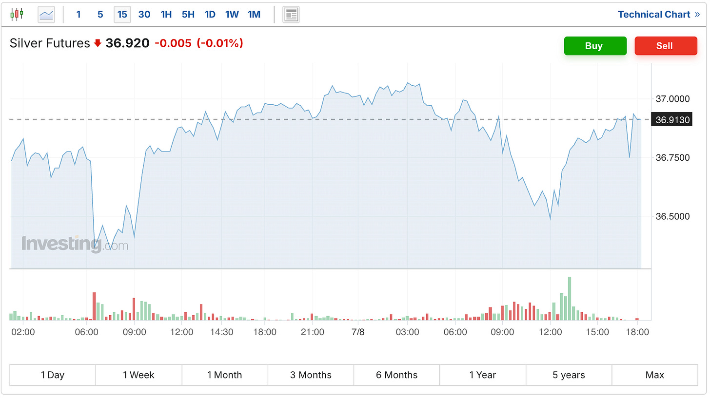 Gold And Silver Rebound After Sunday Night Selloff, While Trump Administration Offers Trade Deal UpdatesSilver Futures Go Back Over $37, While Trump Writes Powell An Inflation Letter