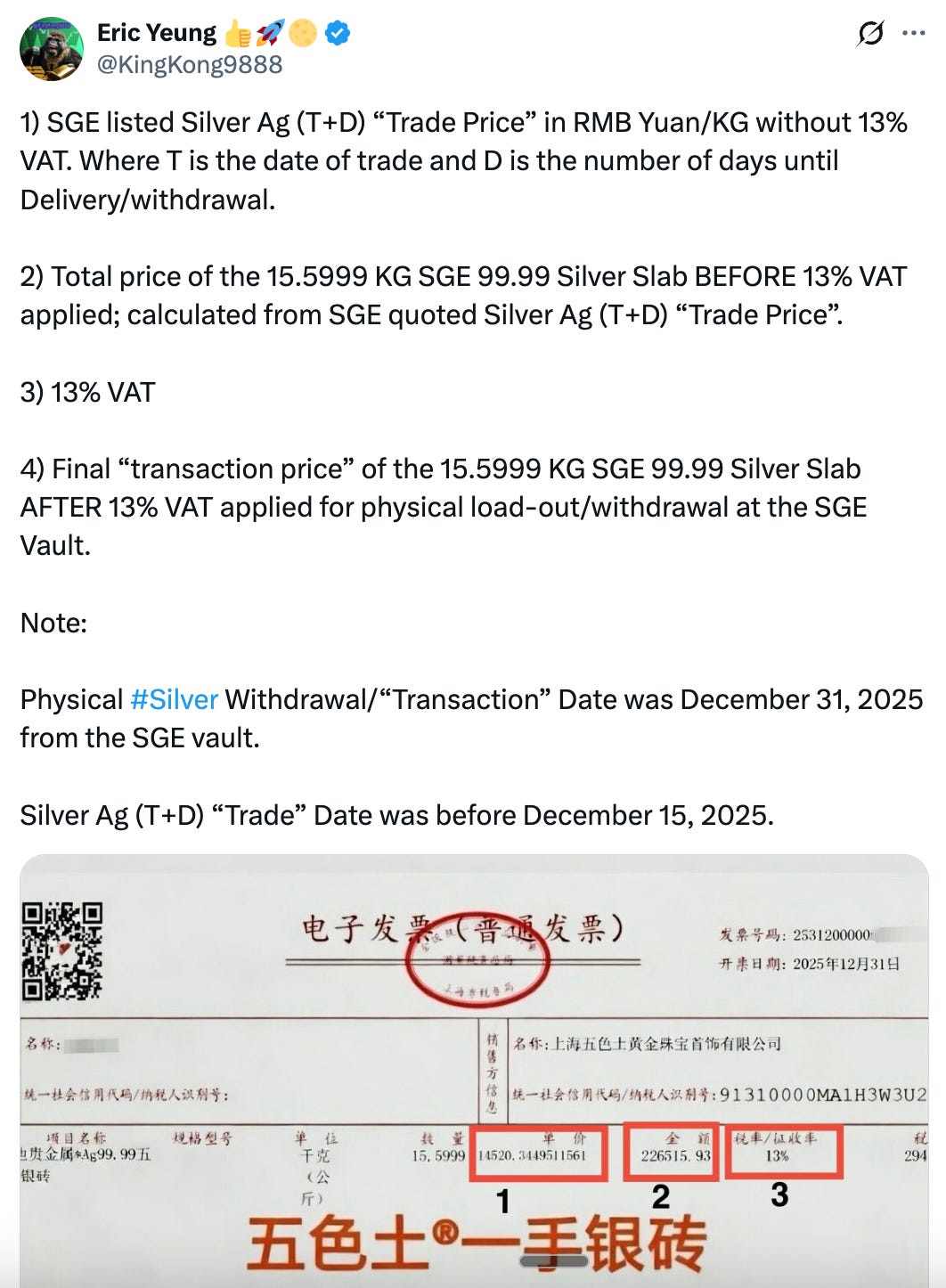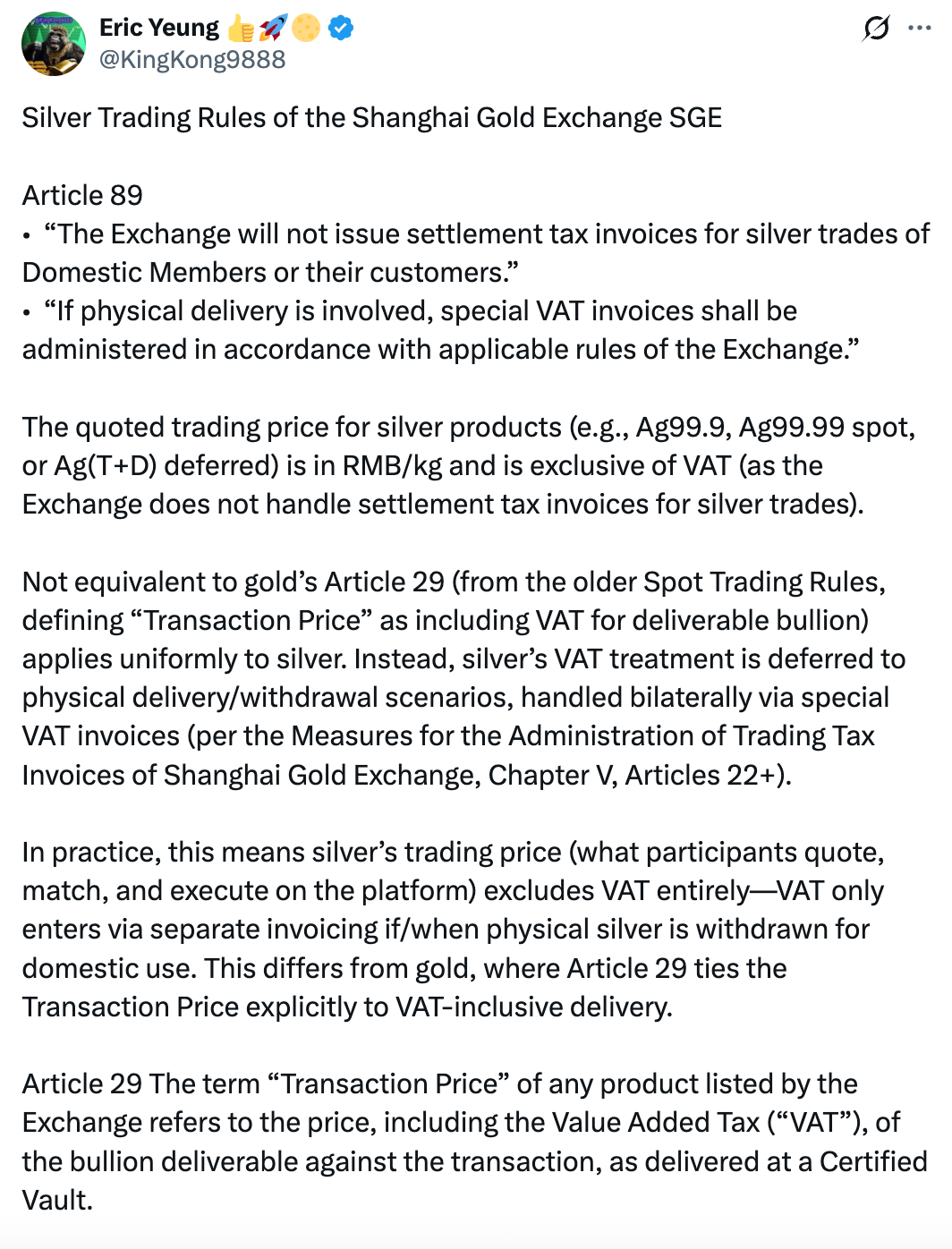 Additionally, in terms of the Shanghai price, I’ve seen that there is debate as to whether the VAT tax is included in the quoted Chinese price. My understanding had been that the VAT was added in certain situations on top of the exchange price, and after checking with several colleagues, I continue to believe that’s the case, and you can click on either of these tweets below for a more detailed explanation.