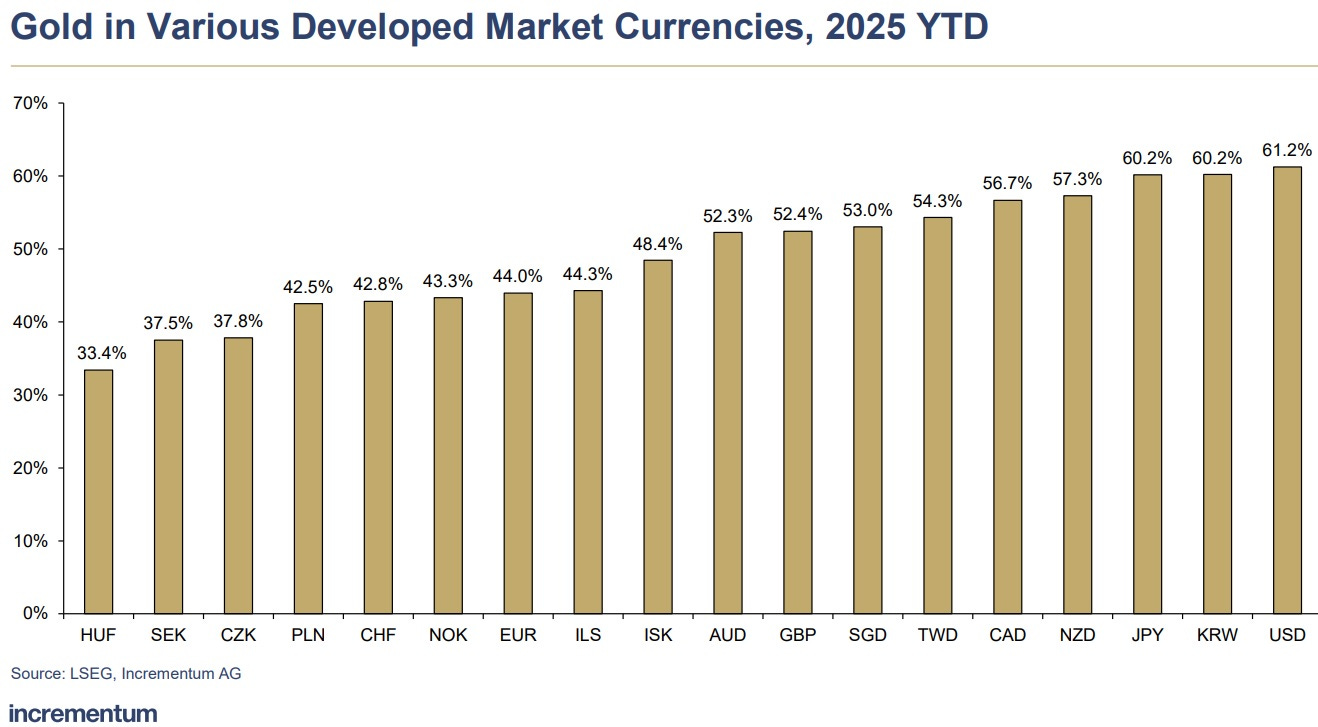It also didn’t matter what currency we used to buy our gold. It’s up against them all: