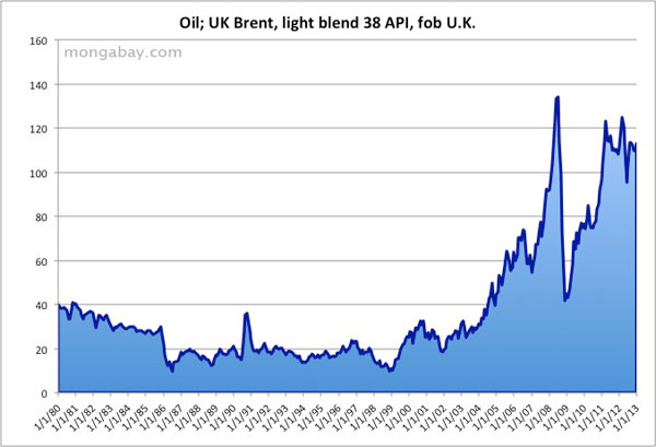 The first thing is the price of oil. The primary job of a miner is to burn massive mounts of energy to extract massive amounts of ore and pulverize it into a few grams of precious metal. If you look at the history of oil, you see what the year 2005 means: