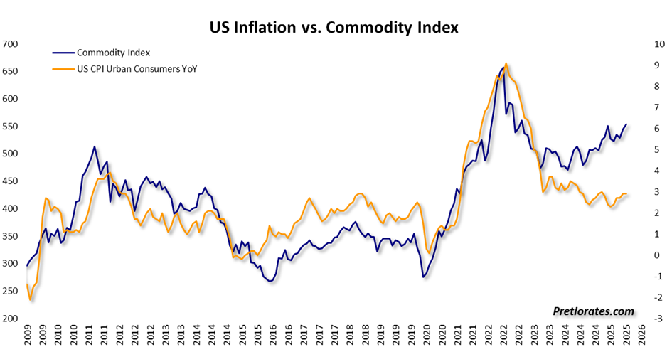 Although uranium is not included in the Bloomberg Commodity Index, it has performed remarkably well over the past five years. The lion’s share of the index’s growth is attributable to gold and silver, which together account for over a quarter of the index. Various agricultural commodities also rose sharply, while oil, gas, and most industrial metals performed rather poorly. Thanks to precious metals, the index surprisingly broke away from its close correlation with inflation—it is currently high compared to the consumer price index (CPI), unless the CPI suddenly kicks into high gear.