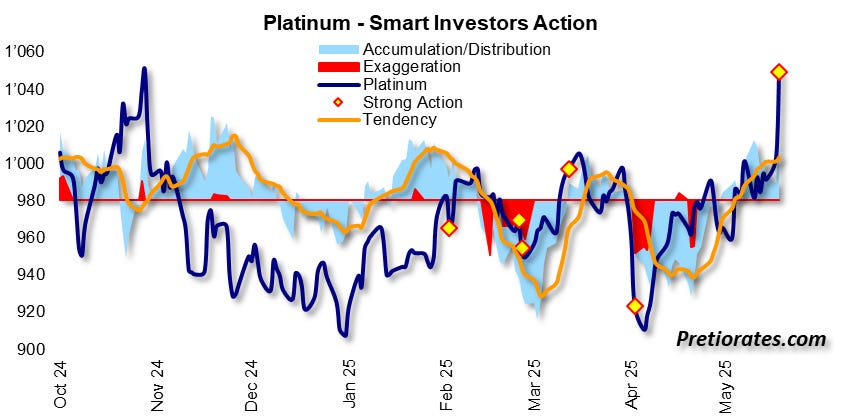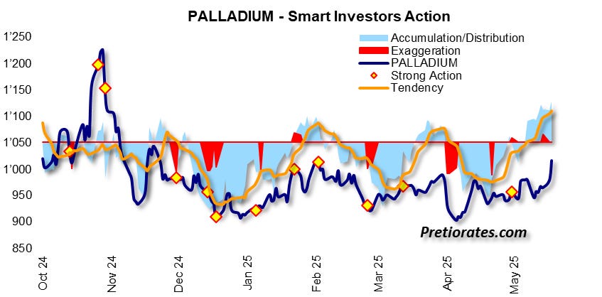 Palladium, long in the shadows, also appears to be starting to shine again – at least according to the Smart Investors Action indicator. After months of silence, there is once again increased “nibbling” here.