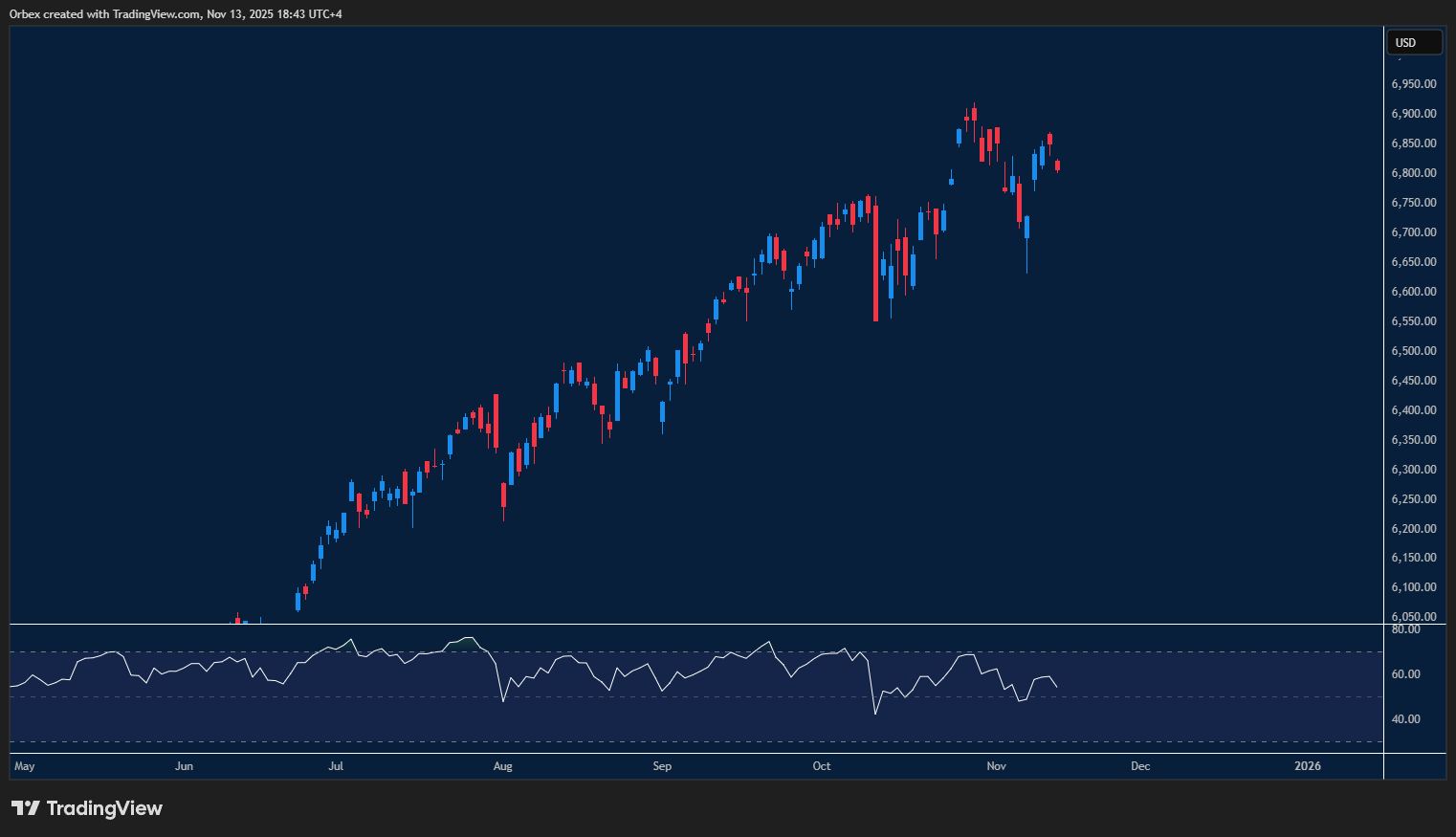 Indices were on the rise again as a series of economic data supported a solid American stock market, which seemed to ease fears that the Fed might cut rates due to a weakened economy. A steady labour market in recent weeks, combined with a progressive earnings season in which AI and tech have led the way, maintains the S&P’s drive to focus on another all time high. The quote is hovering above 6700, and 6900 is a key resistance ahead.