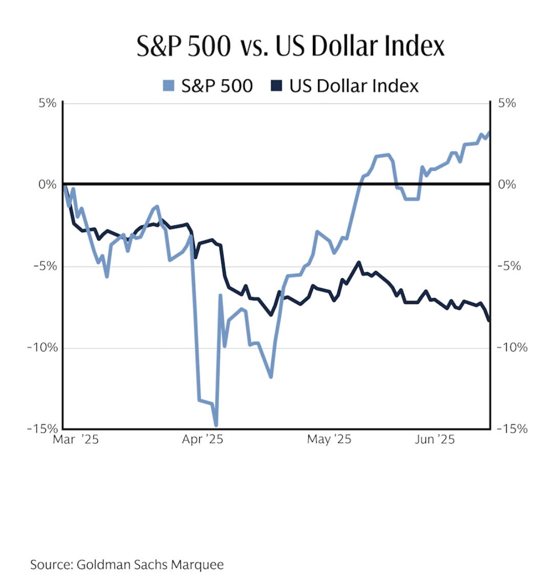 The recent divergence—U.S. equities bouncing back while the dollar lags—has raised eyebrows. But historically, that’s not unusual. FX often lags equity risk-on turnarounds, especially in politically charged backdrops. Garewal points out that the perception of U.S. overvaluation is obscuring the fact that much of the dollar selling has been sentiment-driven, rather than structurally justified.