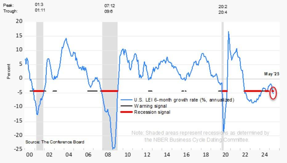 The economic data finally buckled. After weeks of resilience, the hard stuff cracked. Leading indicators turned down again, with the Conference Board’s LEI flashing red for a second straight month. Think of it as the economy’s version of the check engine light—subtle at first, but now blinking aggressively. New orders slumped, jobless claims rose, and housing permits plummeted. Even the consumer, long the reluctant hero of this cycle, is losing steam.