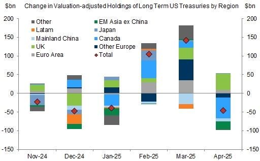 But here’s the kicker: the modest April selling wasn’t some panic exit—it was a strategic drift. A slow recalibration of global exposure to the U.S., as institutional allocators quietly rethink their allocations amid a backdrop of tariff whiplash, trade sabre-rattling, and what’s increasingly looking like weaponized economic policy.