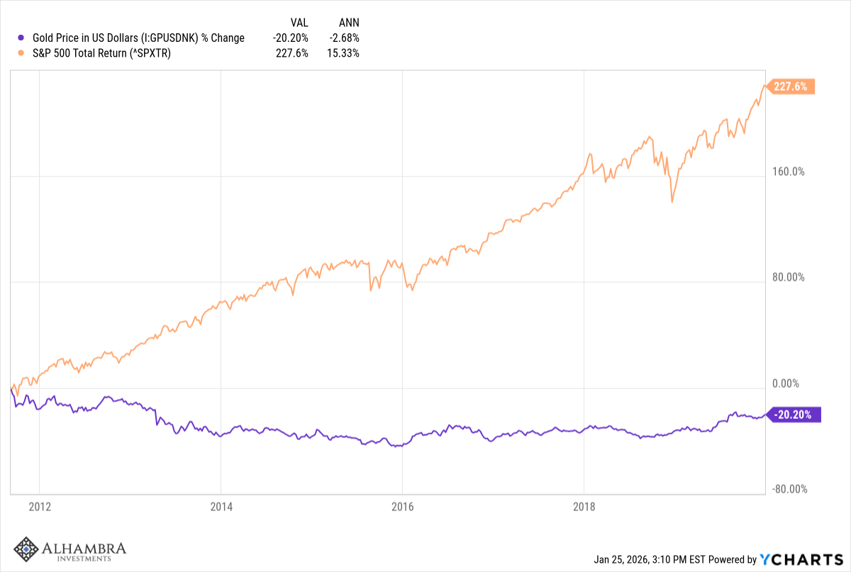 You’ll notice too that gold’s performance has accelerated dramatically over the last year, the second term of President Trump: