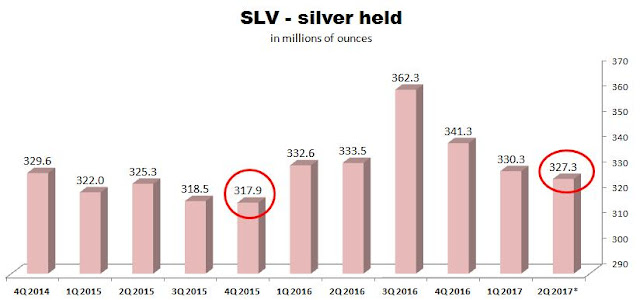 As I discussed in my previous article, since the beginning of 2017 two large gold ETFs, GLD and IAU, have been generally accumulating gold. However, the largest silver ETF (SLV), has been doing the opposite: