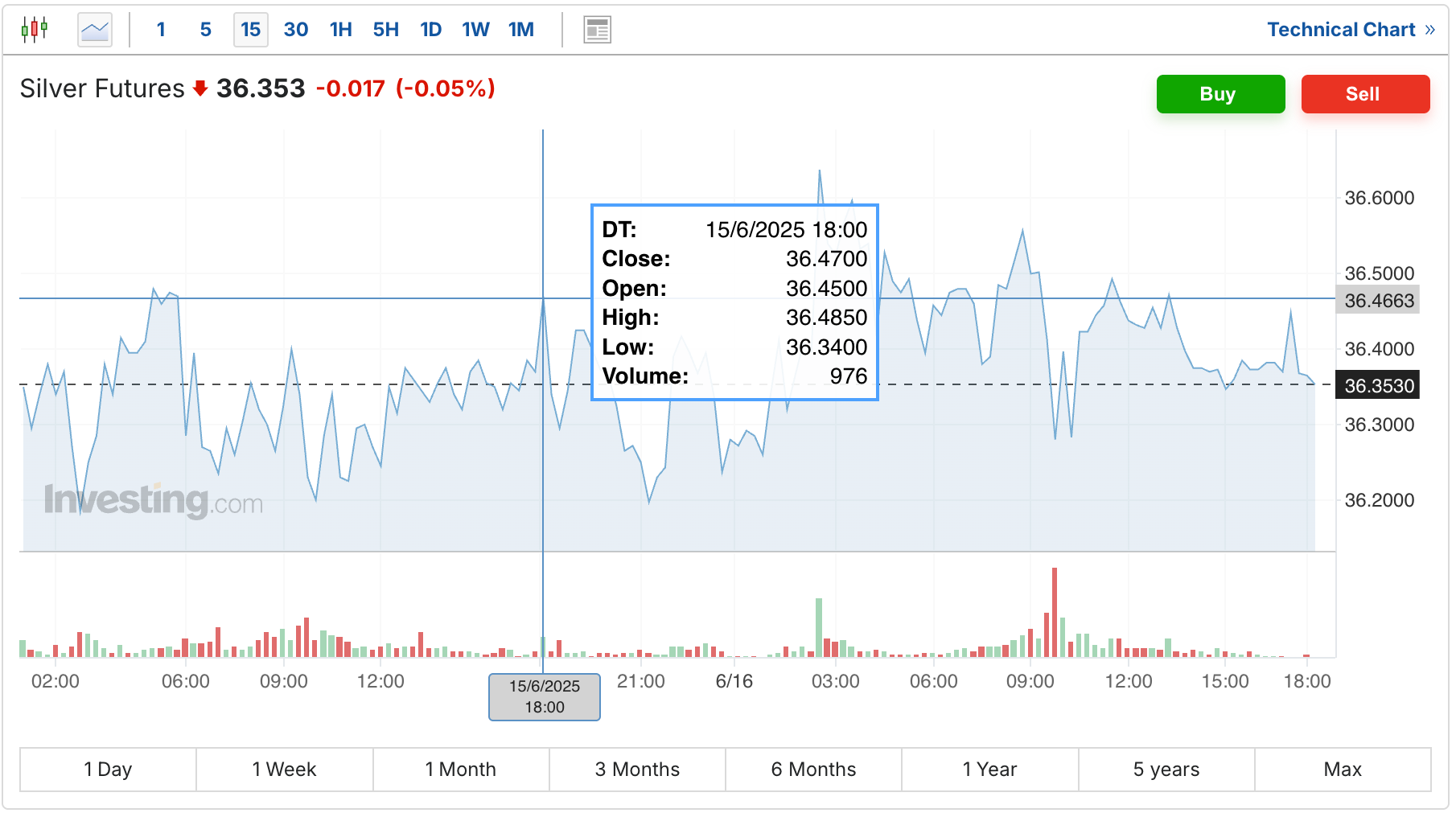 Meanwhile the silver futures are down a dime from the Sunday open.
