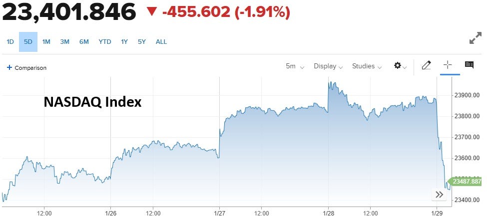The broad equity indexes — especially the tech-heavy Nasdaq — are falling hard this morning.