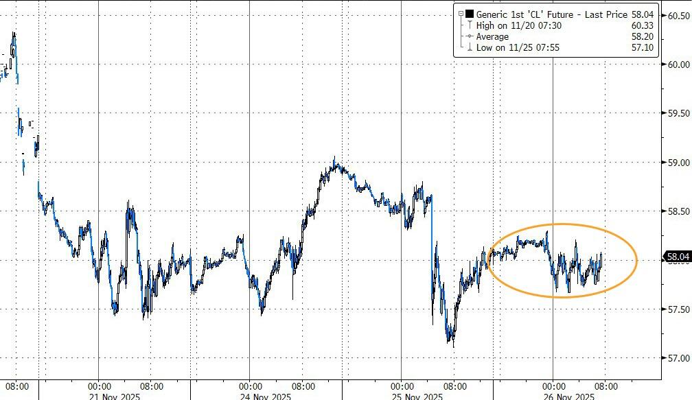 WTI is hovering around $58, near one-month lows...