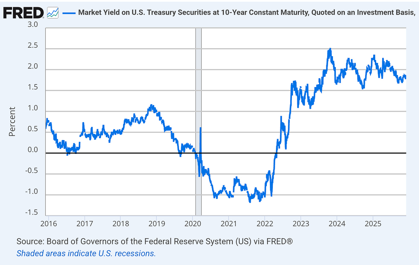 How can they both be so confident? This graph showing 10-year TIPS yields doesn’t prove that the AI boom is raising real interest rates (relative to the late 2010s), but it sure as heck doesn’t prove they are not raising real interest rates: