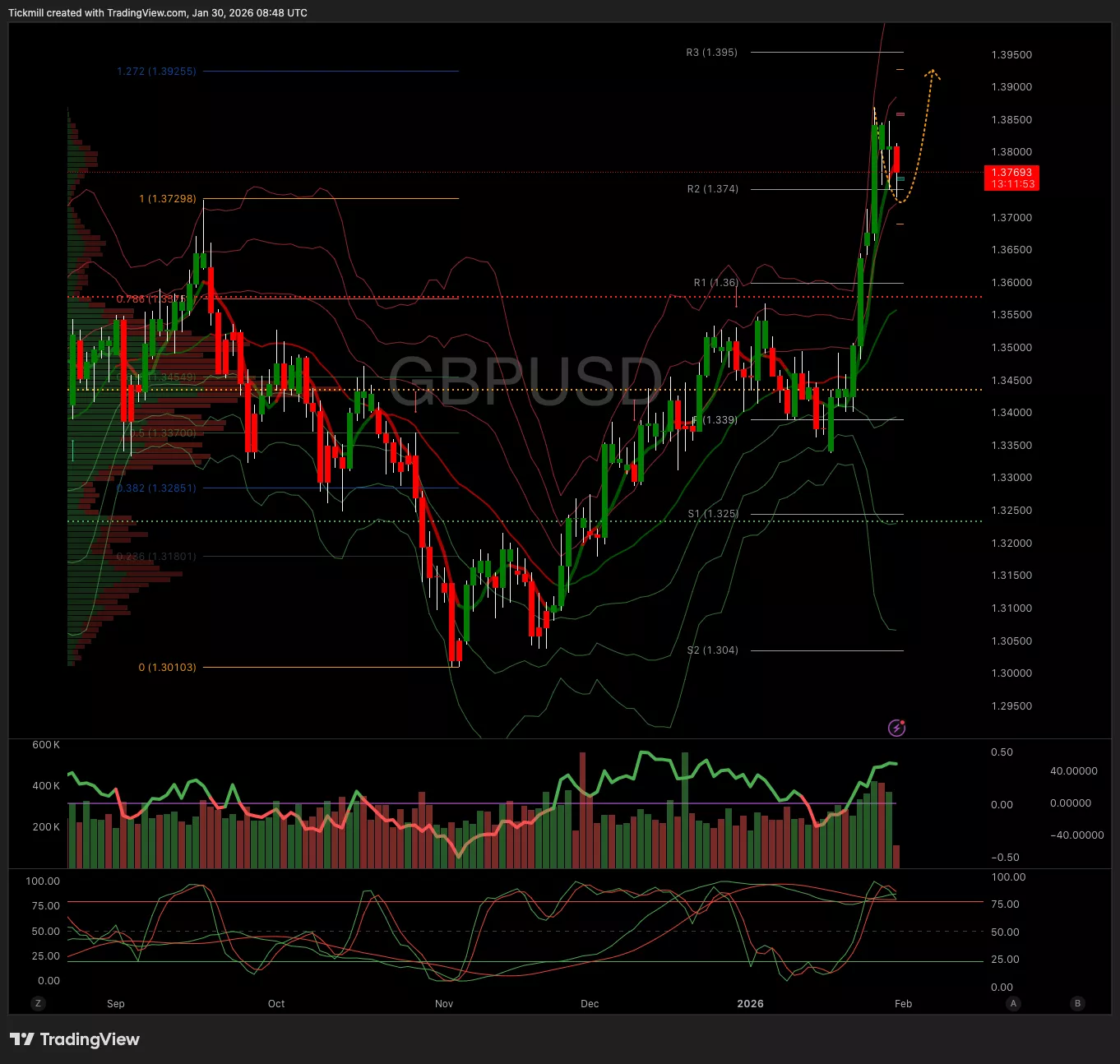 - Above 1.3770 Target 13950