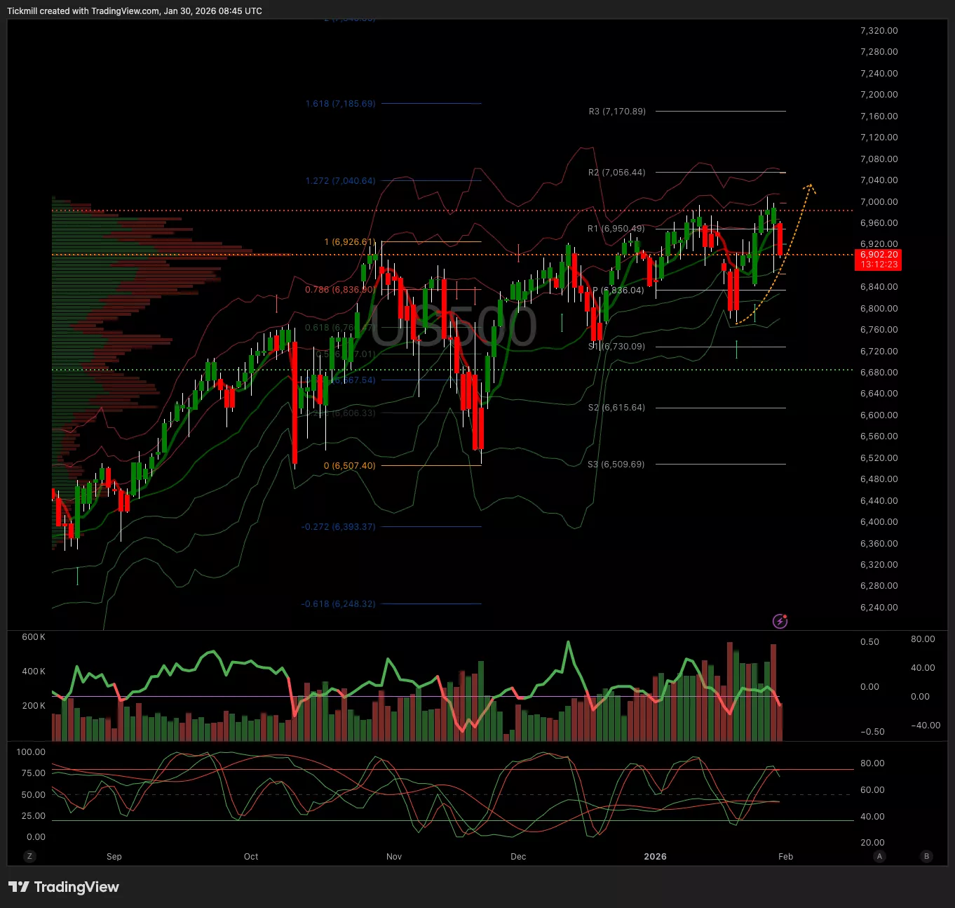 - Below 6960 Target 6860