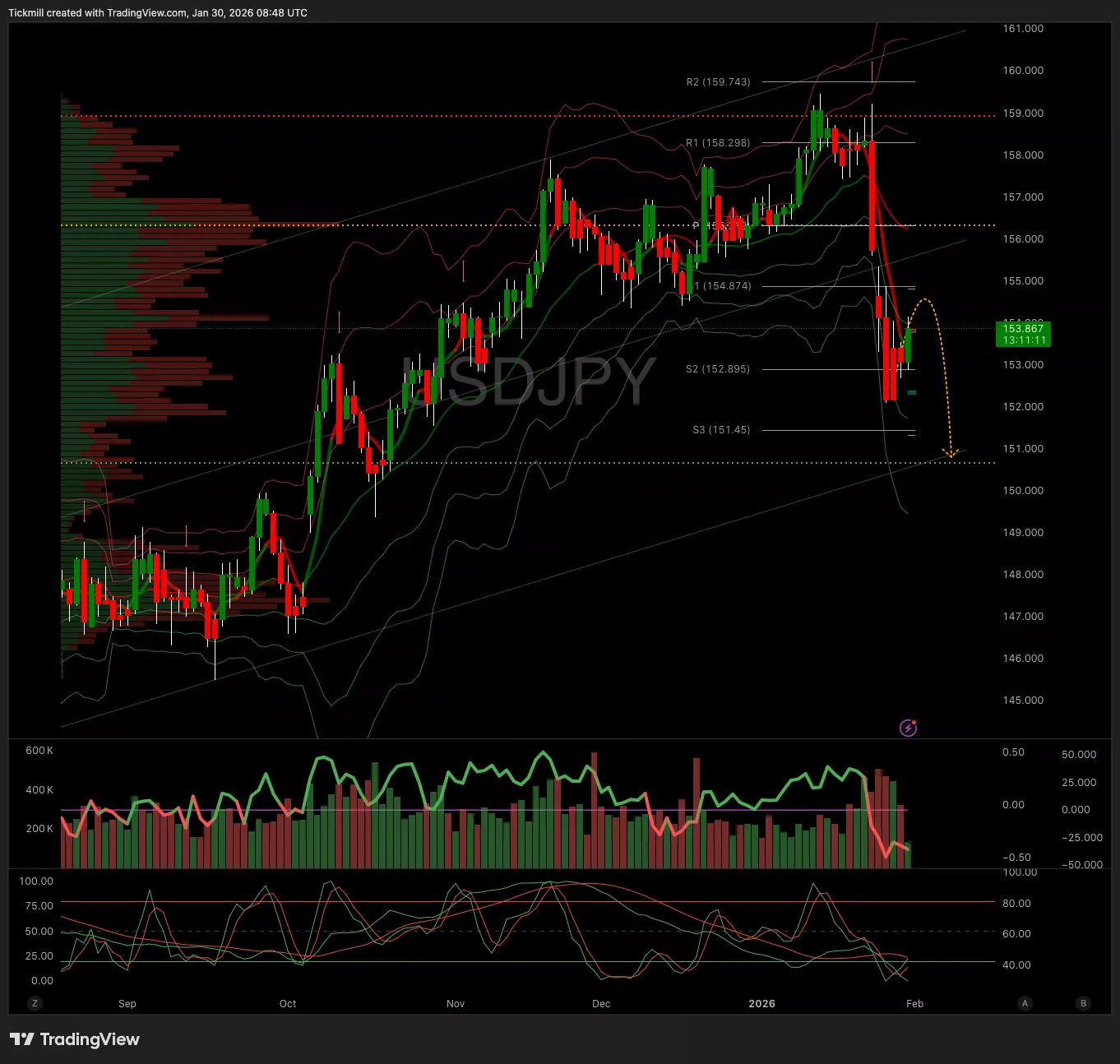 - Below 153.50 Target 151