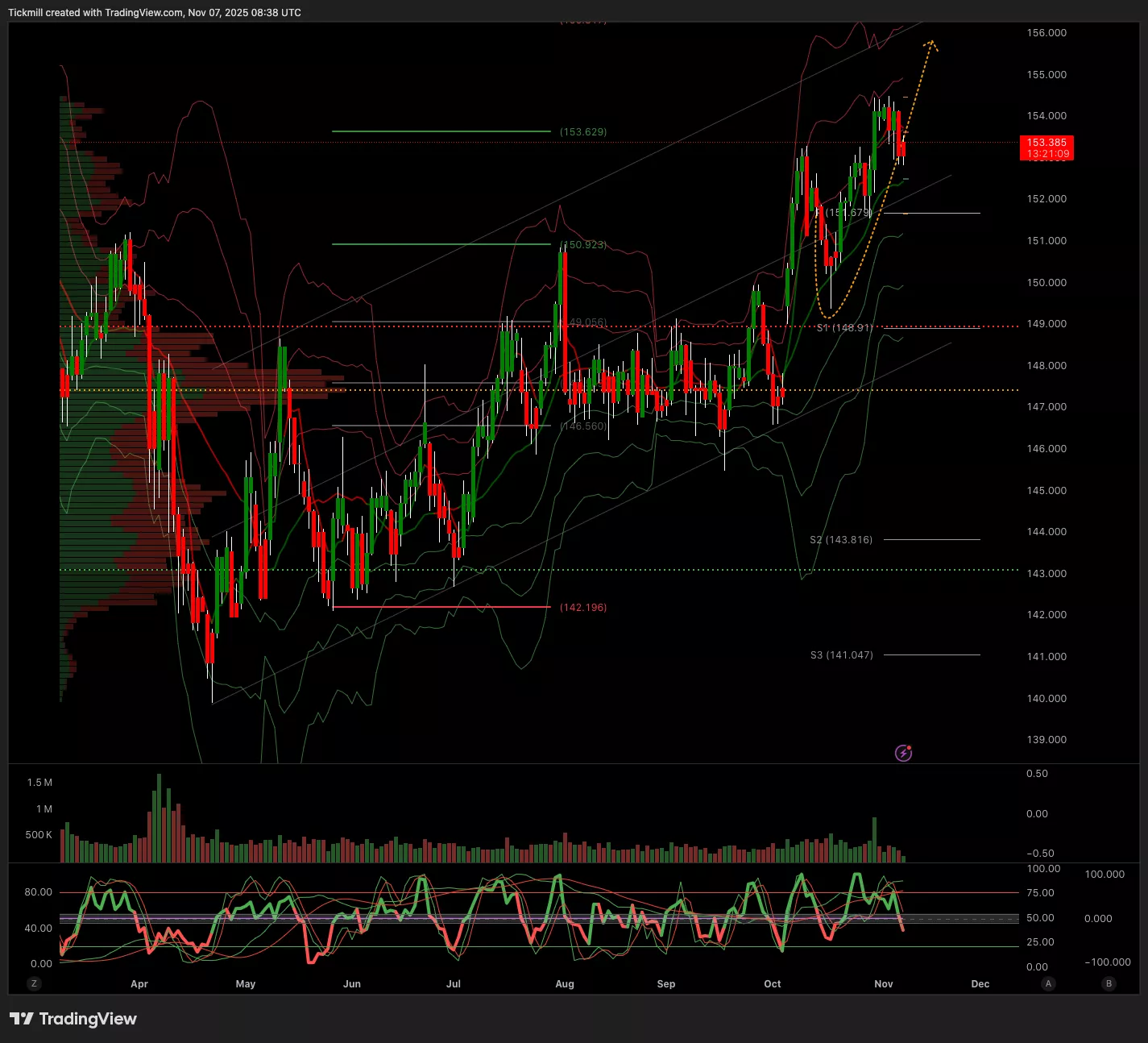 - Below 153.71Target 152.32