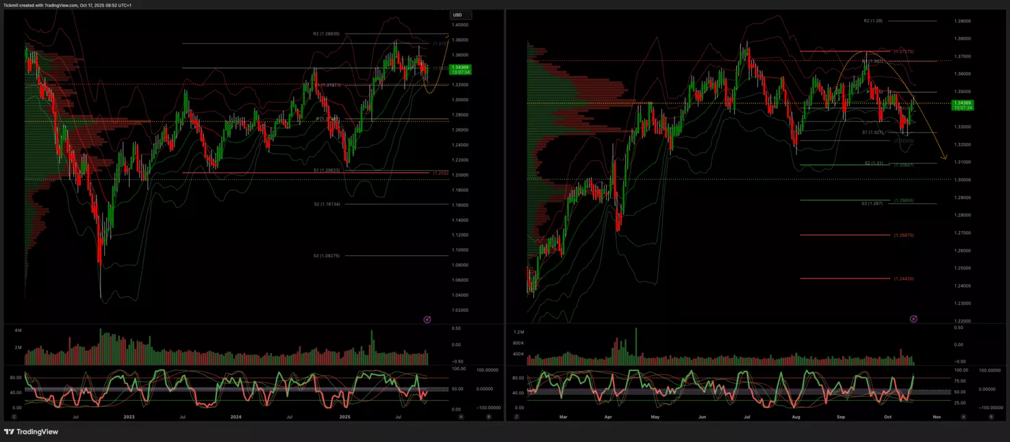 - GBP/USD: 1.3350 (GBP357.5m), 1.3250 (GBP332.3m)