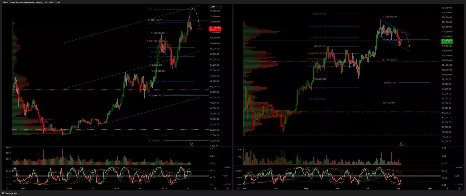 - Weekly VWAP Bearish Below 118k Target 110k