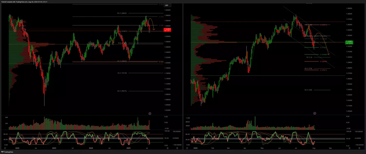 - Weekly VWAP Bearish Below 1.3360 Target 1.3050