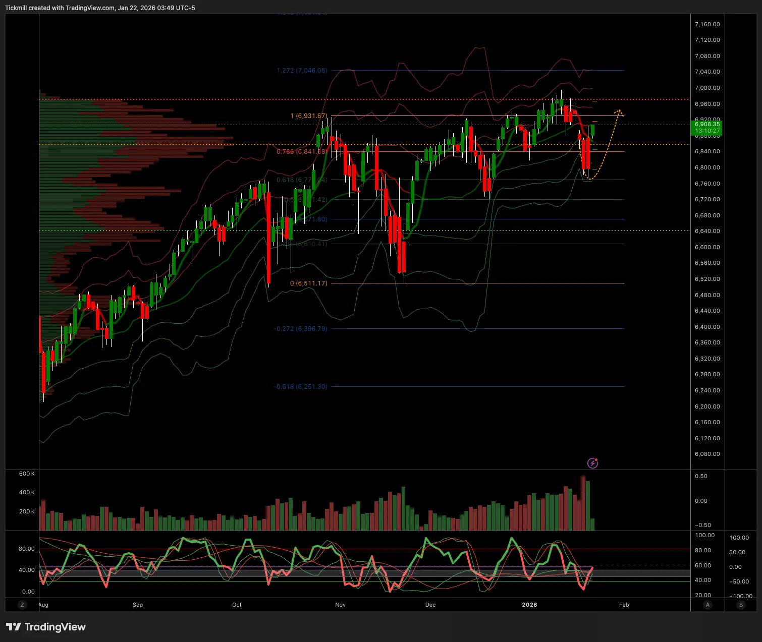 - Below 6848 Target 6797