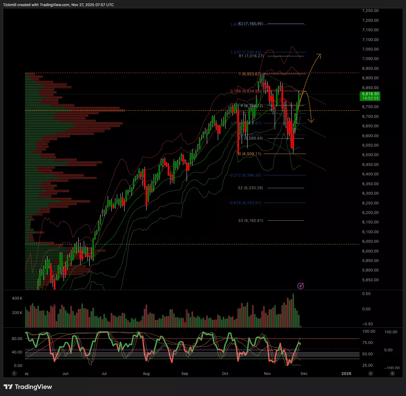 - Below 6701 Target 6631