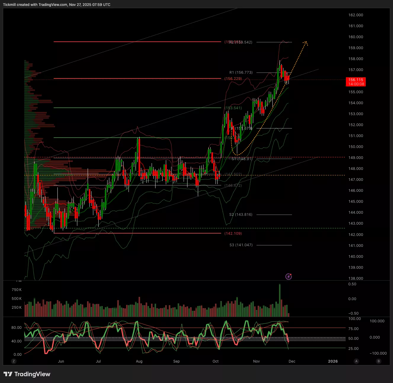 - Below 155.25 Target 153.50