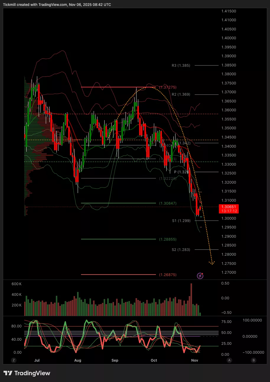 - GBP/USD: 1.3000 (283M), 1.3100 (862M), 1.3200 (653M)