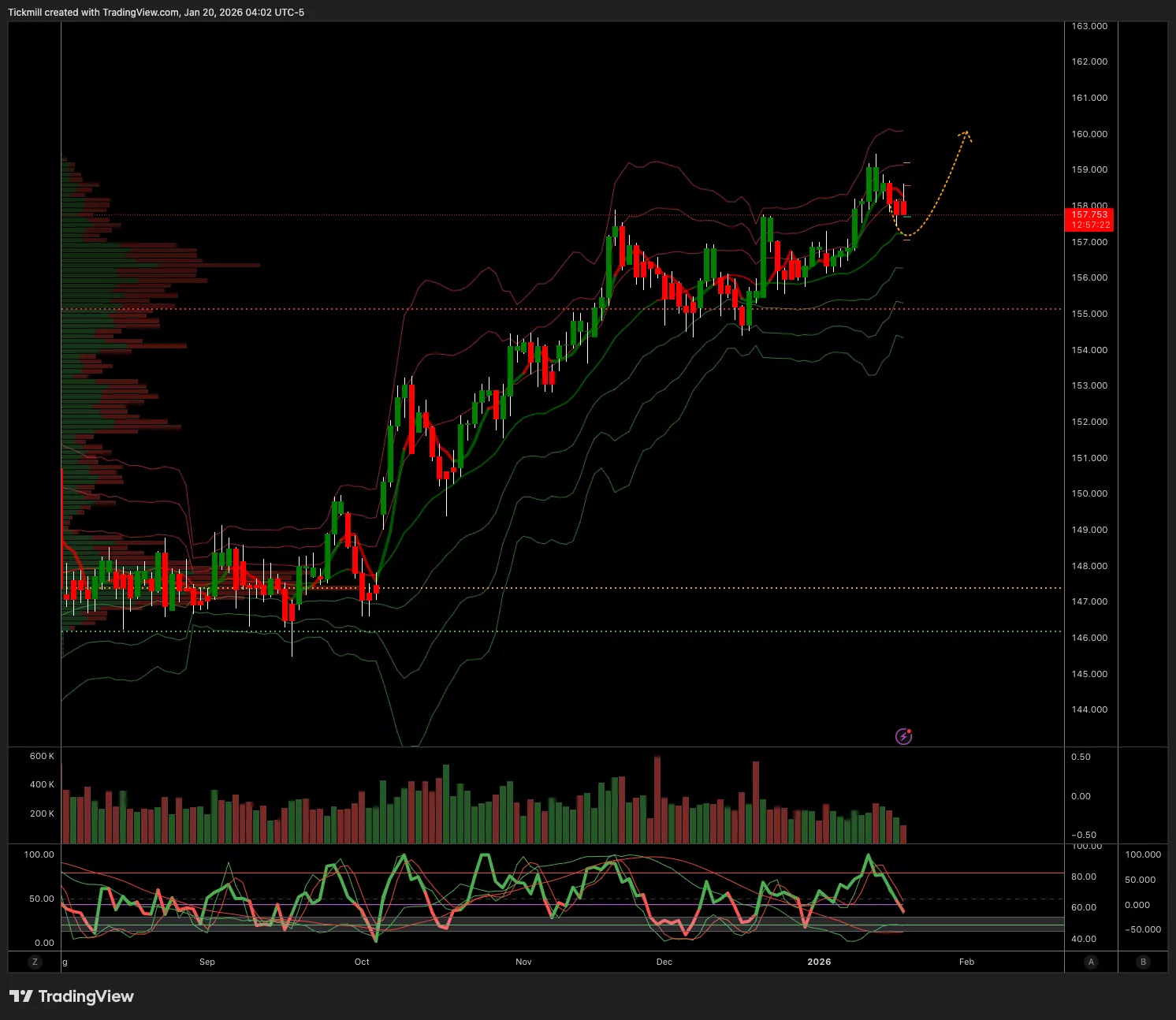 - Below 157 Target 155