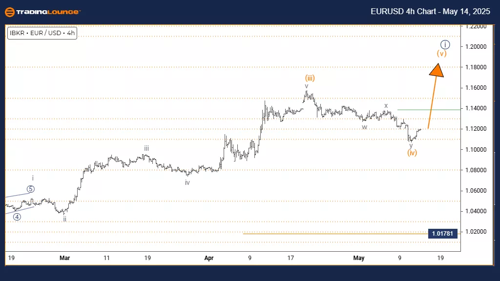 On the 4-hour chart, EURUSD shows a bullish trend, driven by a clearly defined impulsive wave structure. The analysis indicates that orange wave 5 is forming within the context of navy blue wave 1, following the completion of the corrective orange wave 4. This current wave movement marks the final leg in the ongoing bullish sequence, often preceding a potential correction or trend shift.