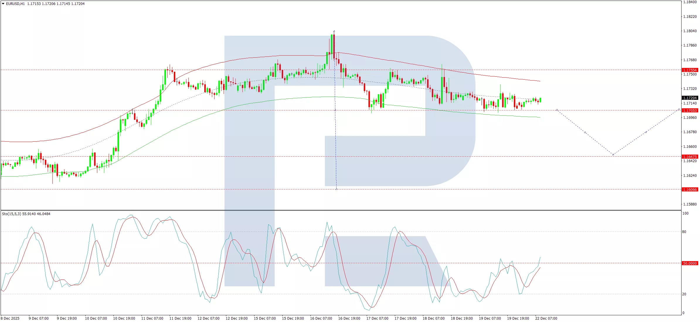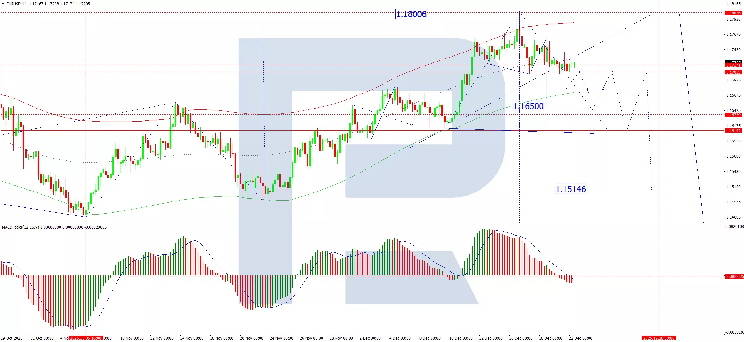 On the H1 chart, the market completed another decline wave to 1.1702, followed by a correction to 1.1737. A new downward impulse towards 1.1650 is currently forming. A sustained break below this level would signal the potential for an extended third wave, targeting the 1.1645 area as a local objective.