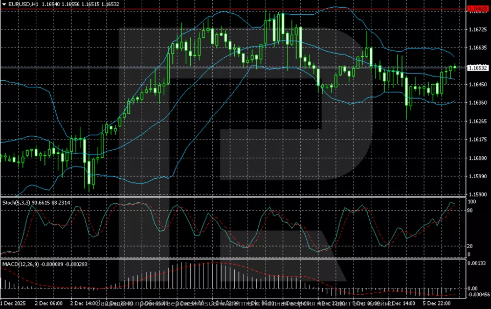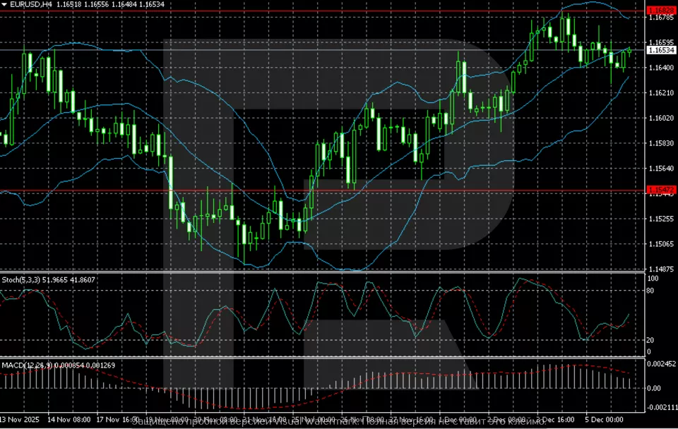 On the H1 chart, the pair is consolidating after a strong impulse that tested the 1.1680 resistance. It is currently holding above a key local support level at 1.1635, from which the most recent recovery originated.