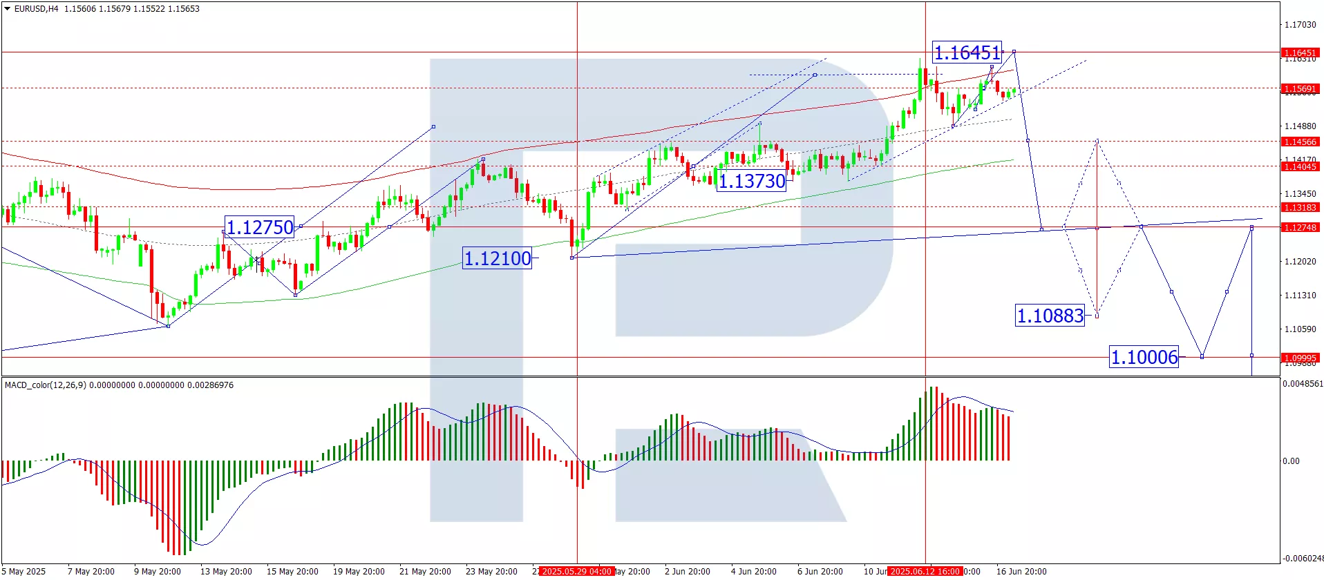 EUR/USD remains supported in the short term amid geopolitical uncertainty and softening Fed rate expectations, with key resistance at 1.1645 and support at 1.1490 and 1.1456. A sustained break below these levels could trigger a deeper correction towards 1.1275. For now, technical signals indicate a continuation of the consolidation phase, with one more upward impulse likely before a reversal sets in.
