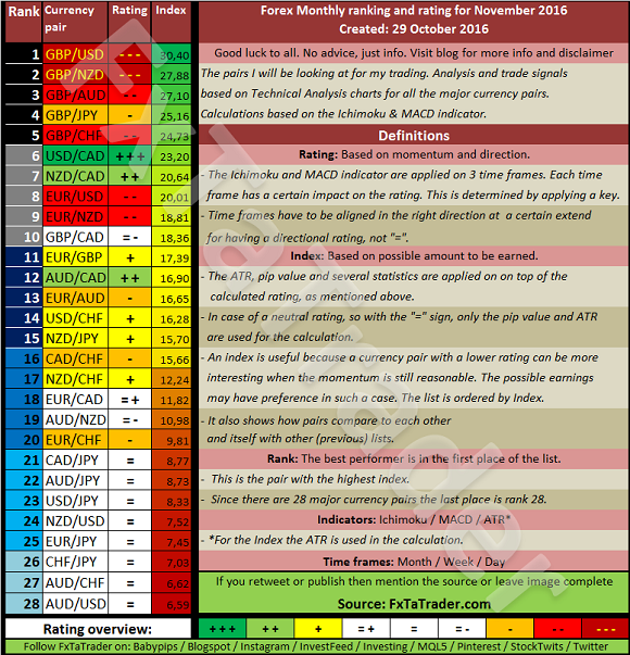 Some of the pairs in the Top 10 comply for a longer term trade based on the Technical Analysis (TA) of the Weekly and Monthly chart. For the coming month these seem to be: