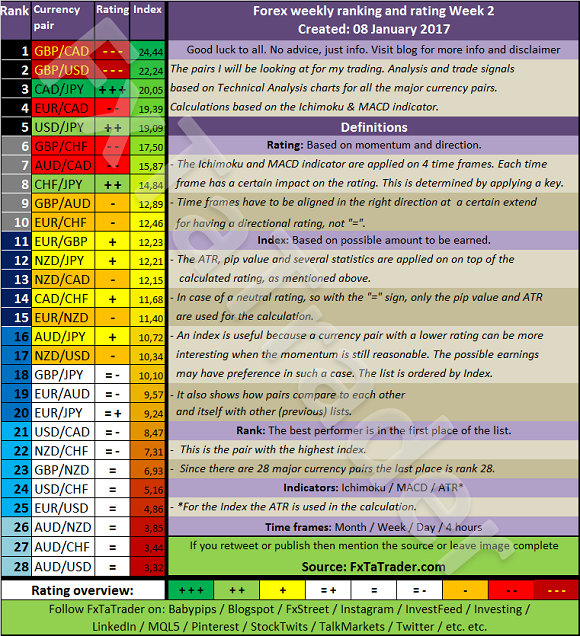 Forex Ranking, Rating And Score For Week 2 / 2017