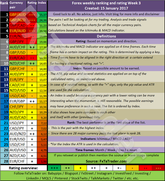 Forex Ranking, Rating And Score For Week 3 / 2017