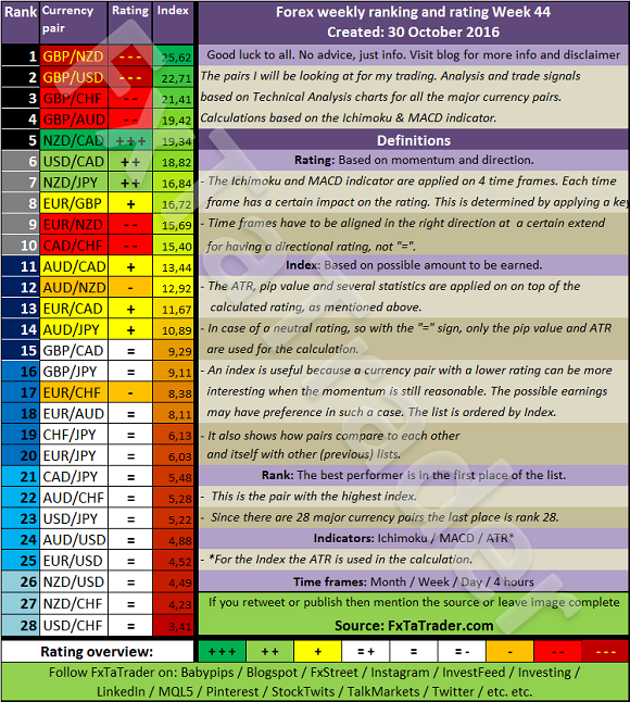 Forex Ranking, Rating And Score For Week 44 / 2016