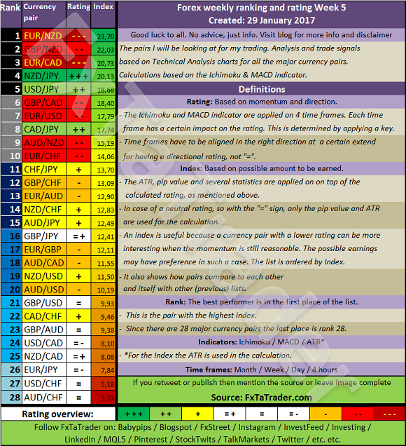Forex Ranking, Rating And Score For Week 5 / 2017