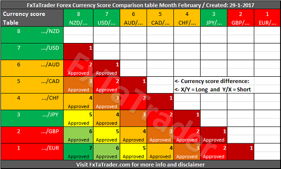 - First of all only better classified currencies in combination with weaker classified currencies are "Approved" when there is a Currency Score difference of at least 1 in the current month.