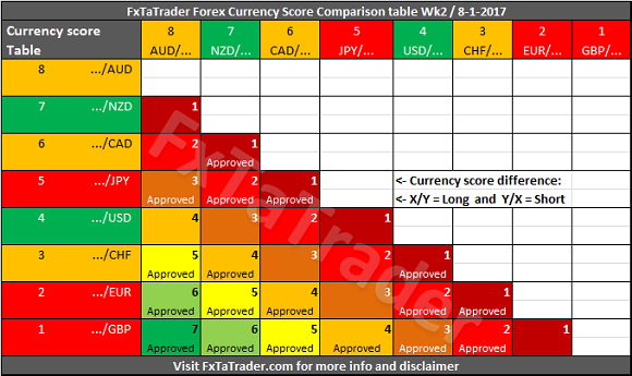 - First of all only better classified currencies in combination with weaker classified currencies are "Approved" when there is a Currency Score difference of at least 1 in the current week.