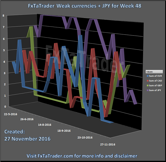 Weak: EUR, GBP, CAD. The preferred range is from 1 to 3.
