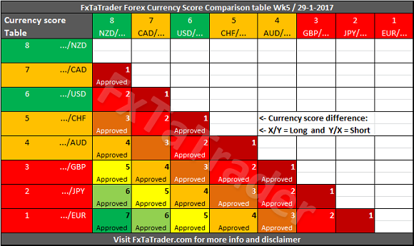 - First of all only better classified currencies in combination with weaker classified currencies are "Approved" when there is a Currency Score difference of at least 1 in the current week.