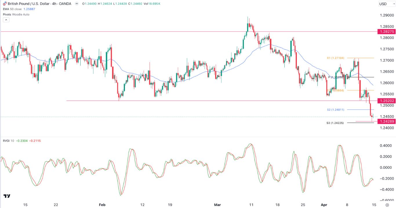 The GBP/USD pair continued its downward trend on Monday as traders embraced a risk-off sentiment. It has moved below the key support at 1.2520, its lowest swing on February 5th of this year.