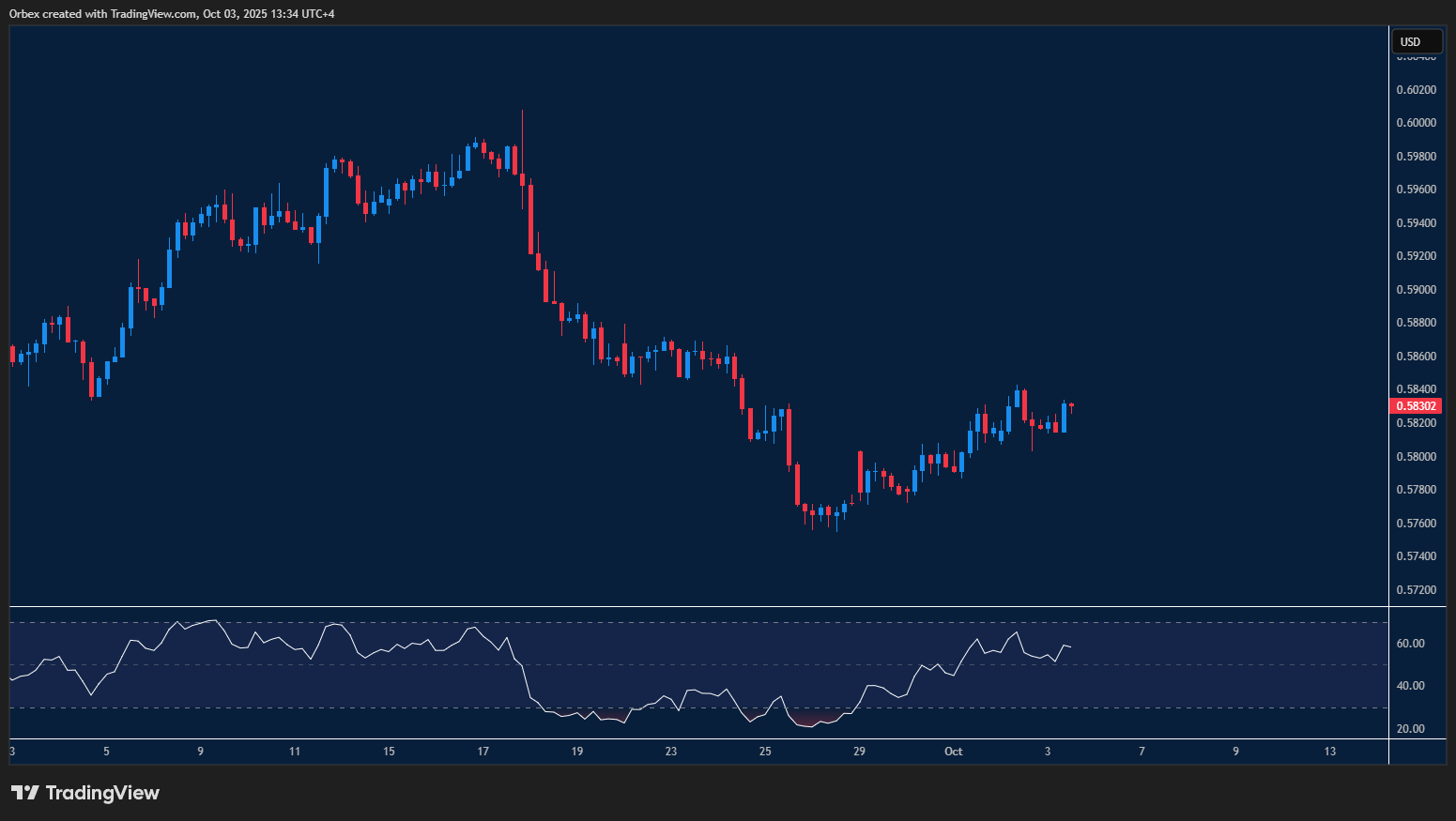 The Kiwi saw some momentum as the greenback remained cautious across the board. However, the latest rebound came to a halt at 0.5840, and a subsequent dip below 0.5800 could see the buy side under pressure. The former support level of 0.5760 is the first hurdle for bears to clear before moving towards the next top at 0.5700. Any chance of an upward continuation needs a 0.5900 break to move towards September’s high.