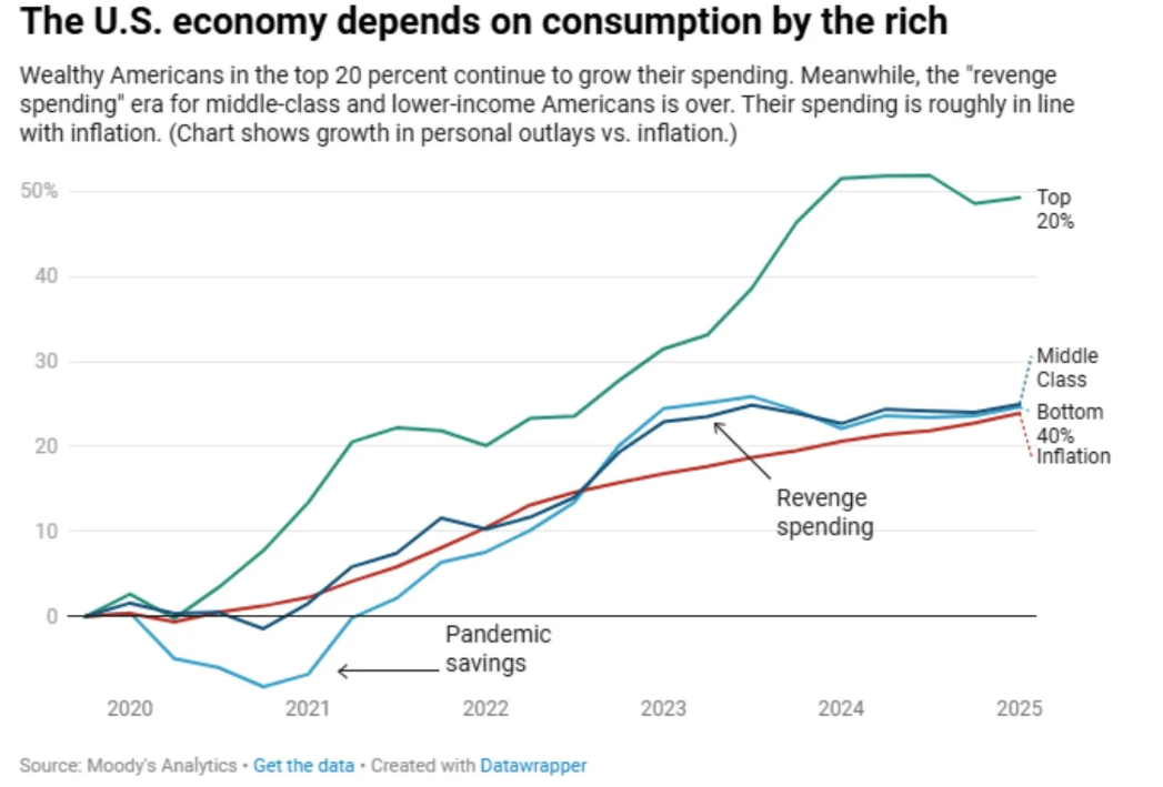 - Wealth inequality in consumption: Wealth effects are most pronounced among higher‑income households. Median consumers without significant asset holdings may reduce spending if jobs or real income weaken.