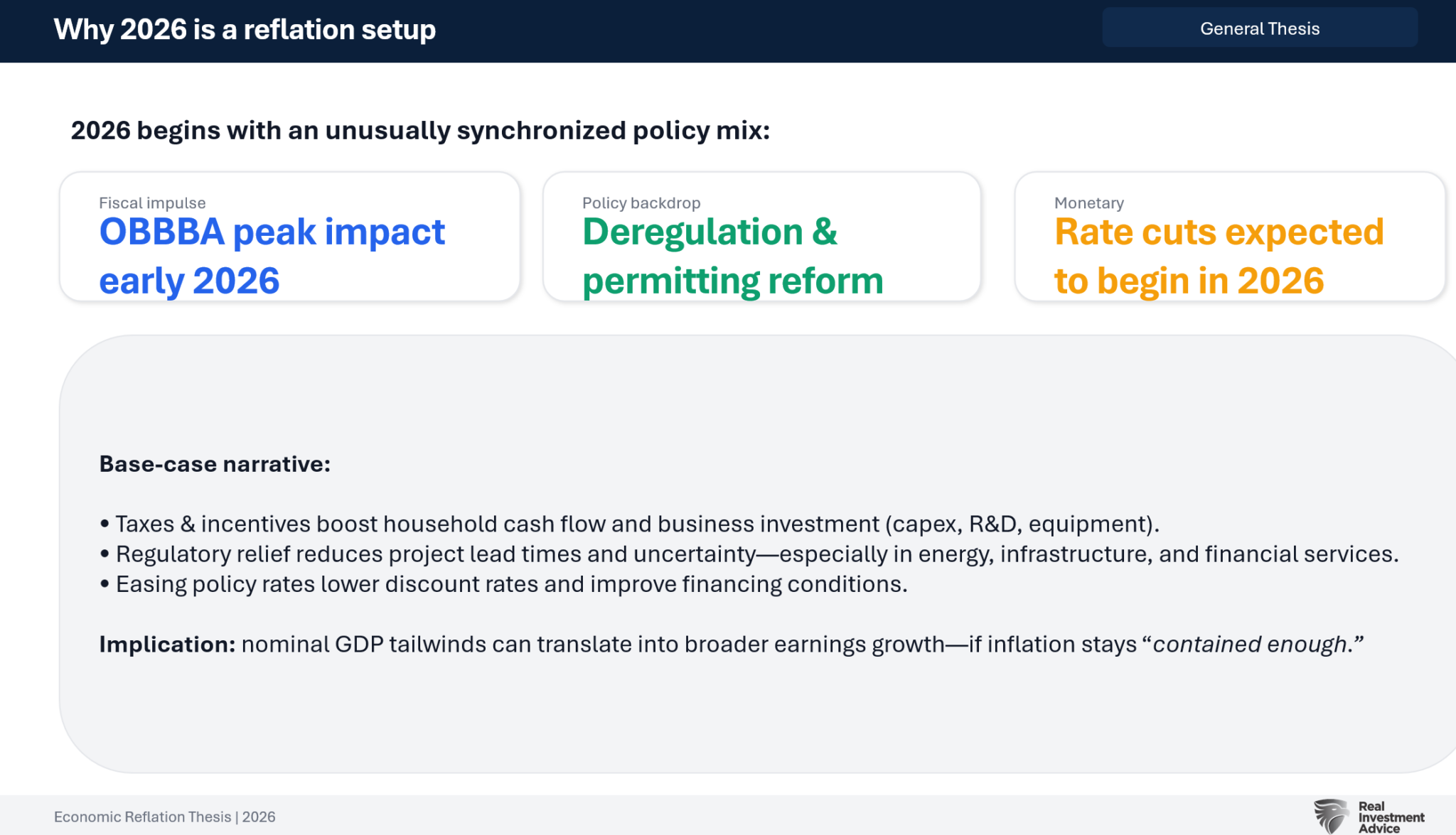 Mainstream Expectation: New tax measures, including expanded investment credits and incentives, are expected to boost consumer incomes and corporate spending in 2026. Forecasts incorporate these fiscal tailwinds into growth and profitability models.