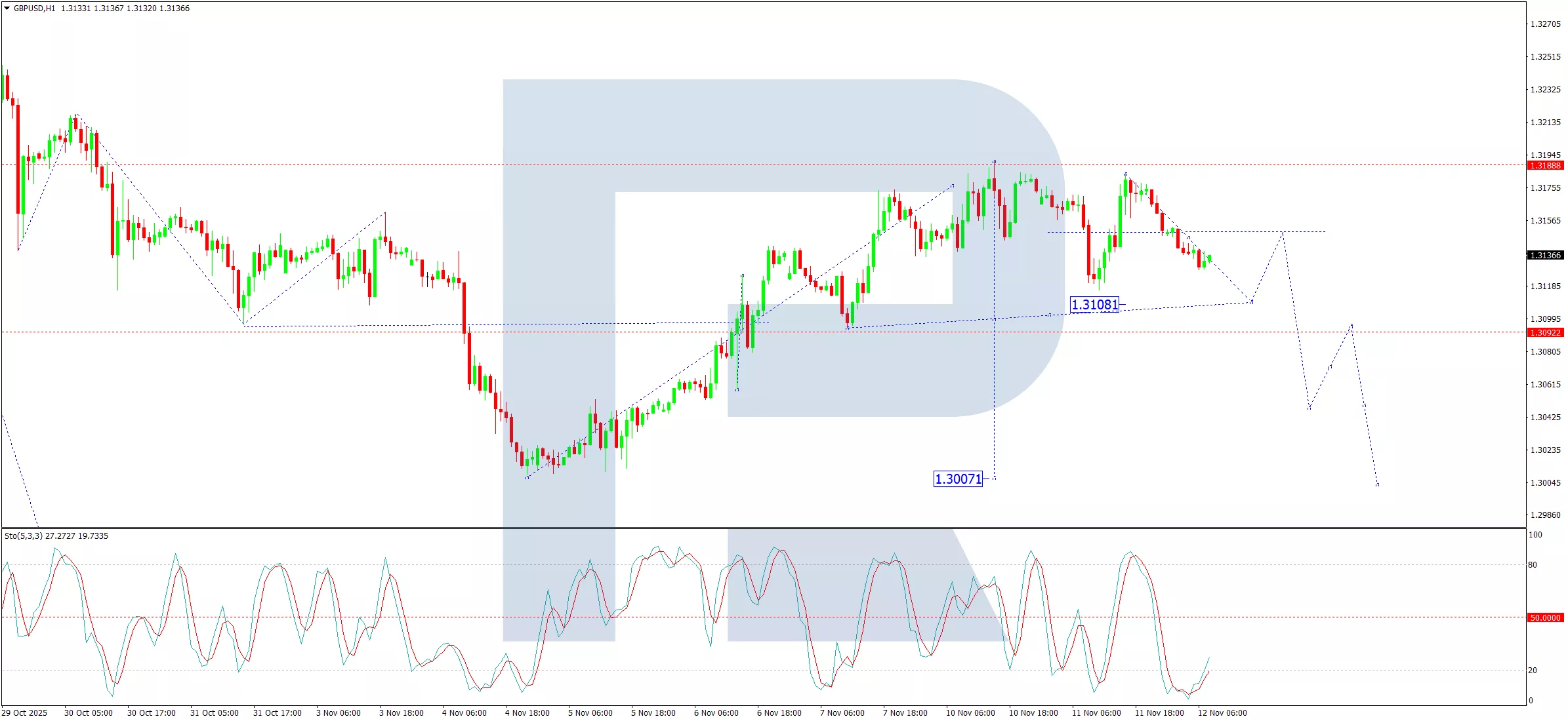 On the H1 chart, the pair completed an upward correction to 1.3188 after breaking from a range at 1.3100. A new downward wave is now developing, initially targeting 1.3108. Following this, a technical retracement to test 1.3150 from below is expected. Once this correction is complete, the downtrend is projected to extend towards 1.3050. The Stochastic oscillator confirms this outlook. Its signal line is at the 20 level, indicating oversold conditions but also supporting the view that downward momentum is currently dominant.
